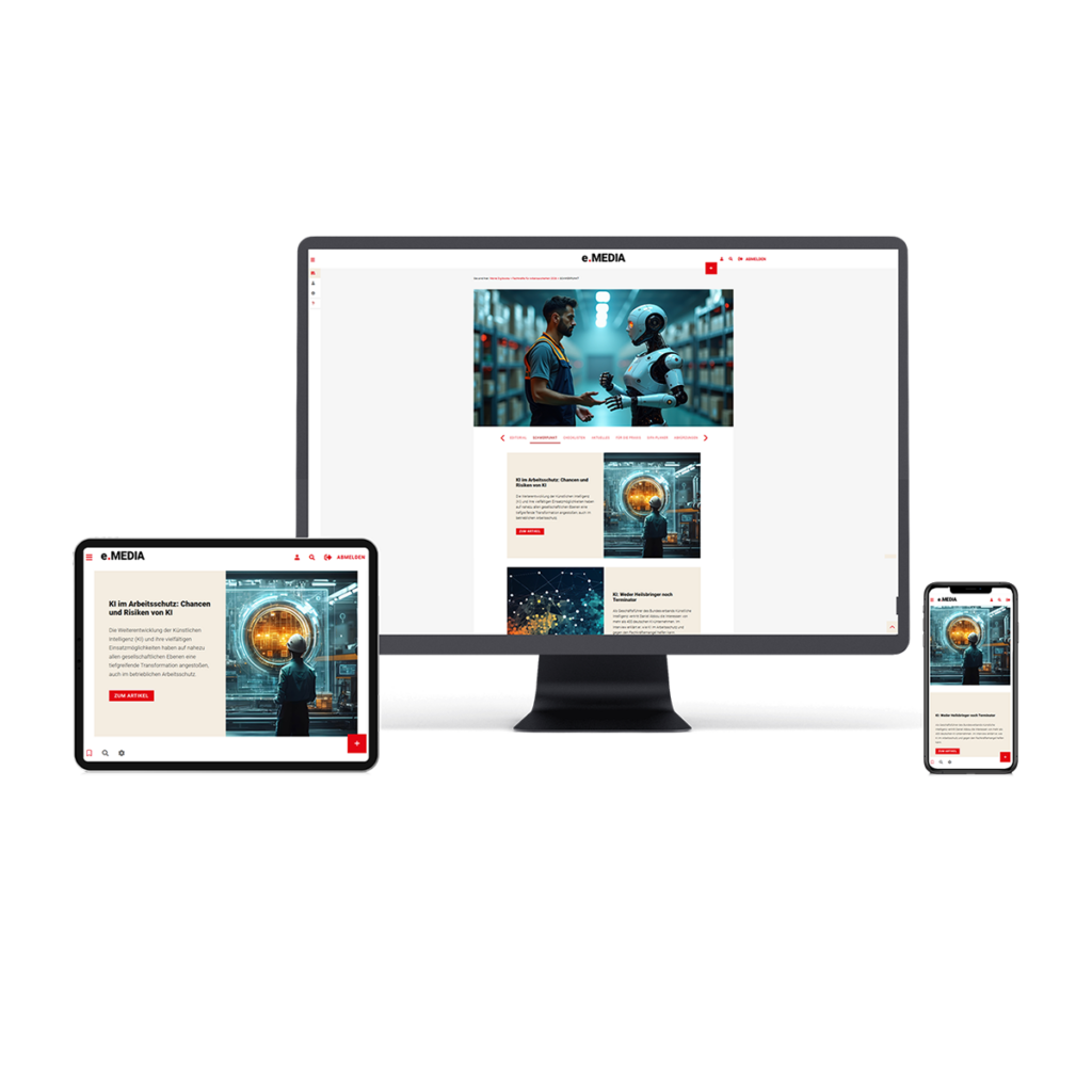 Unsere e.MEDIA-Digibooks sind weit mehr als digitale Fachbücher. Sie verbinden fundiertes Fachwissen mit praxisorientierten Tools, die den Arbeitsalltag erleichtern: ausfüllbare Checklisten, Unterweisungshilfen und individuell anpassbare Funktionen für Ihren persönlichen Arbeitsbereich.