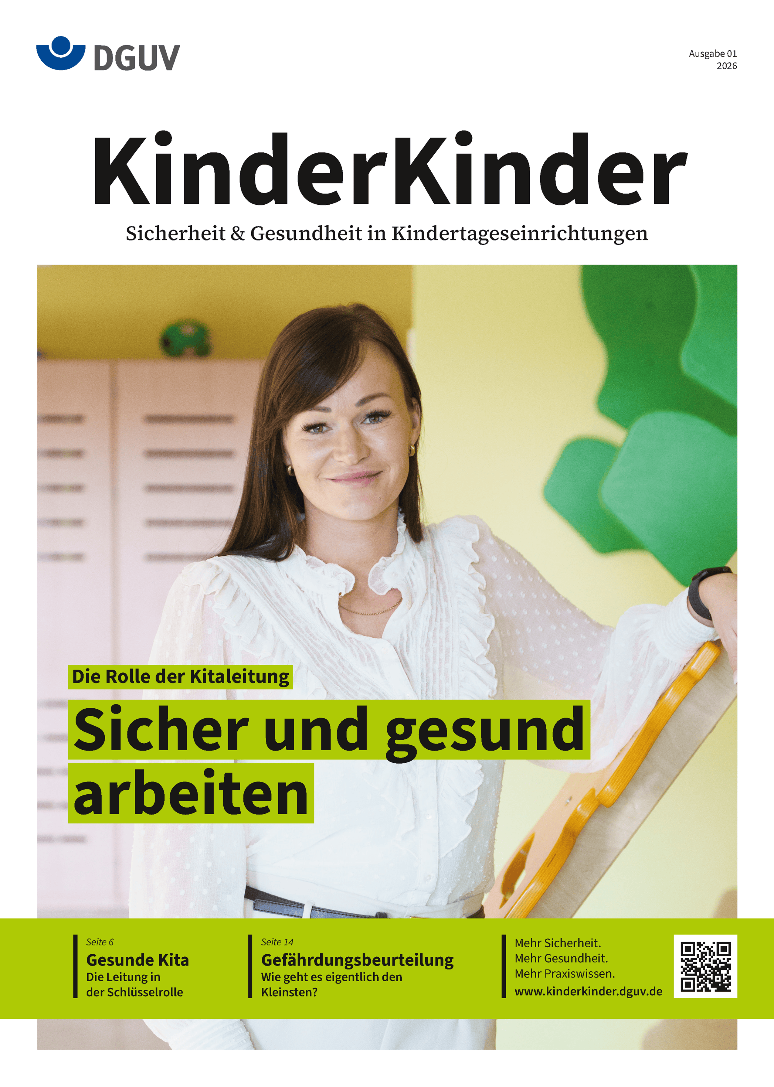KinderKinder“ erscheint vierteljährlich herausgegeben von der Deutschen Gesetzlichen Unfallversicherung (DGUV) und wird Kitas kostenfrei zur Verfügung gestellt.